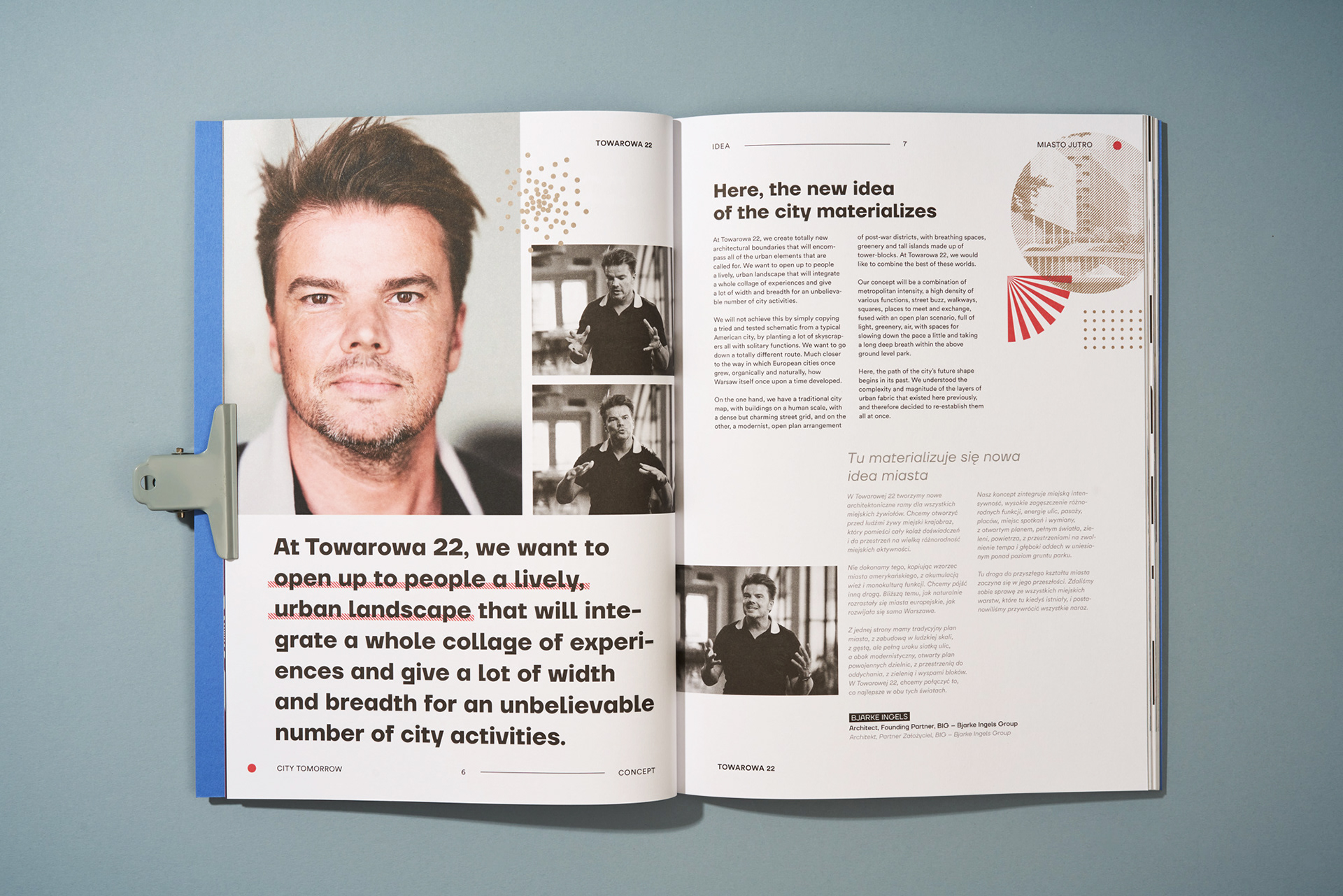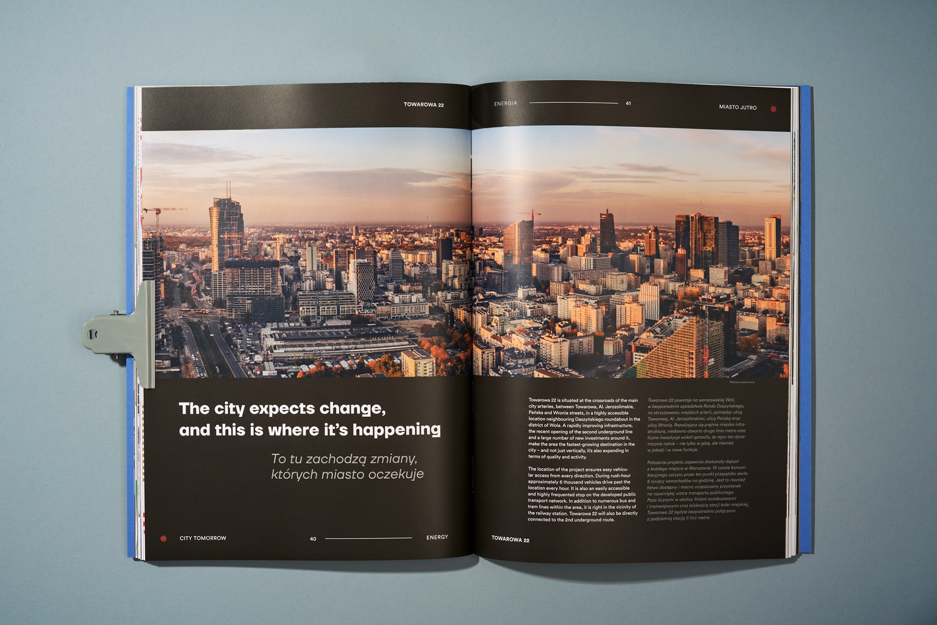 Project of brochure for Towarowa 22, a mixed-use urban regeneration, aimed at bringing back a complete closed-off and neglected quarter of Warsaw to the city circuit. Project created with e1collective team.